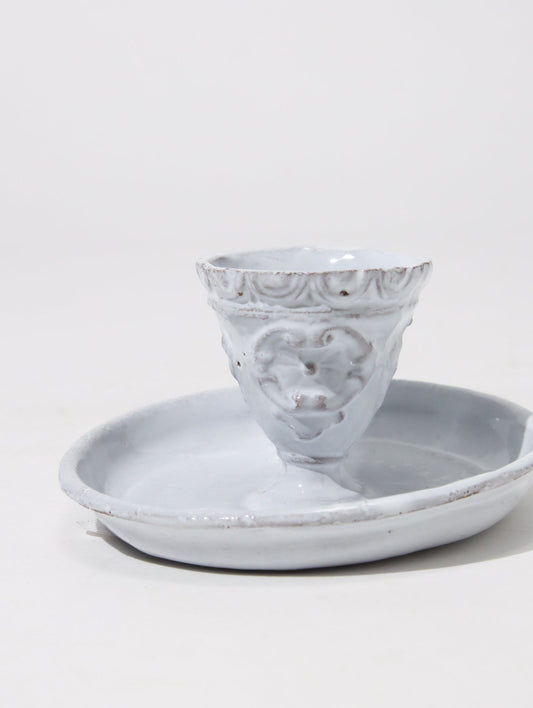 陶器にはパリ郊外で採掘された土を用いており、パリ市内の工房で何度も練り上げ、職人たちの手によりひとつひとつ形作られた後、窯で焼き上げていきます。18世紀パリの手工芸を継承すると同時に、エスタンパージュと呼ばれる技法を現代のテイストで蘇らせ、近代的な生産工程とは真逆をいく時間のかけ方が、全ての器に土を捏ねた手のぬくもりを残しているのです。