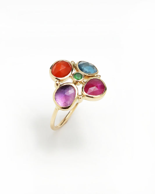 ツェツェ・アソシエのデザイナーでもある、パリの女性アーティスト、カトリーヌ・レヴィが立ち上げたジュエリー・ブランド、「ドレット」。色と形に重きをおき、カトリーヌがセレクトした色とりどりの貴石は、ゴールドのリングの上に不規則に並べられ、ひとつのハーモニーを醸し出します。1つとして同じものがない、「ドレット」のジュエリーは全てが1点もの。日常的に身に着けていても重くなく、首を引っ掻いたり、耳を引っ張ったりすることのないようデザインされており、「ツェツェ・アソシエ」のアイテムのデザインにも通ずる美意識が感じられます。遊び心と実用性を兼ね備えた、大人のためのジュエリーです。