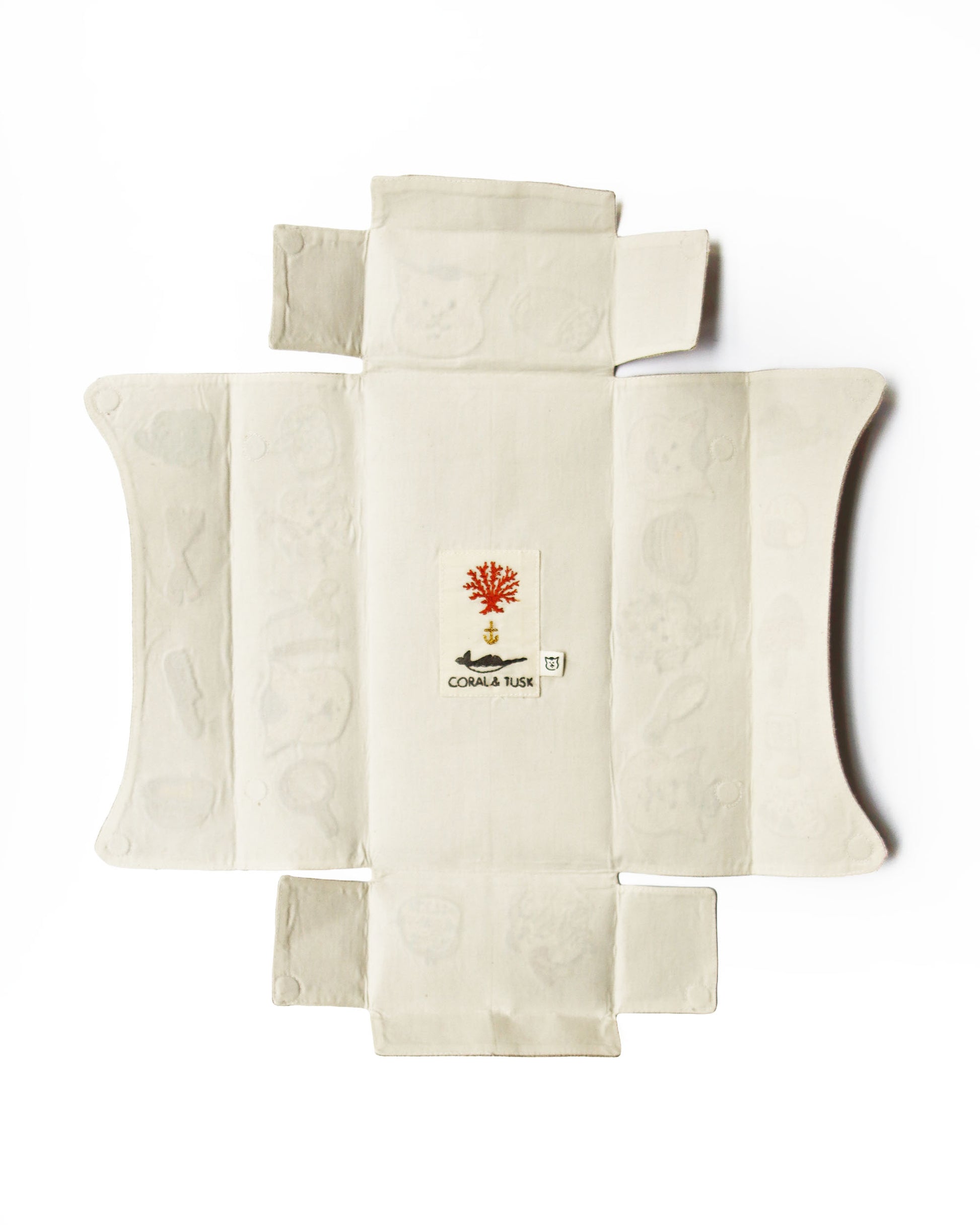 コーラル・アンド・タスクは2007年にニューヨークのブルックリンで設立されたブランドです。デザイナーのステファニー・ハウズリーが描くどこかシュールなイラストを、絶妙で繊細なタッチで刺繍しています。そのプロセスはいつもステファニーのスケッチから始まります。 例えは動物を描くときは「どんな性格で、どこに住んで、何をして暮らしているか」そんな想像をふくらませながら、その動物の特徴や愛らしさを表現しながら描きます。スケッチをスキャンした後は、刺繍用のソフトでステッチをひとつひとつ手作業で描き上げます。 刺繍糸の色もこのときに決まります。これらの作業を全てステファニーが行う事により、手刺繍のような仕上がりになり、ブランドの世界観が色濃く出ます。作り上げた刺繍のファイルは信頼のおけるインドの工場に送られ、ステファニーのデザインを忠実に、刺繍、裁断、縫製され商品が完成します。一方ブルックリンのスタジオにいるチームは出来上がった商品がお店やお客様の手に届くまでのプロセスをサポートします。信頼のおける人々の手によって作られ届けられるコーラル・アンド・タスクの商品には、ステファニーの思いがつまっています。