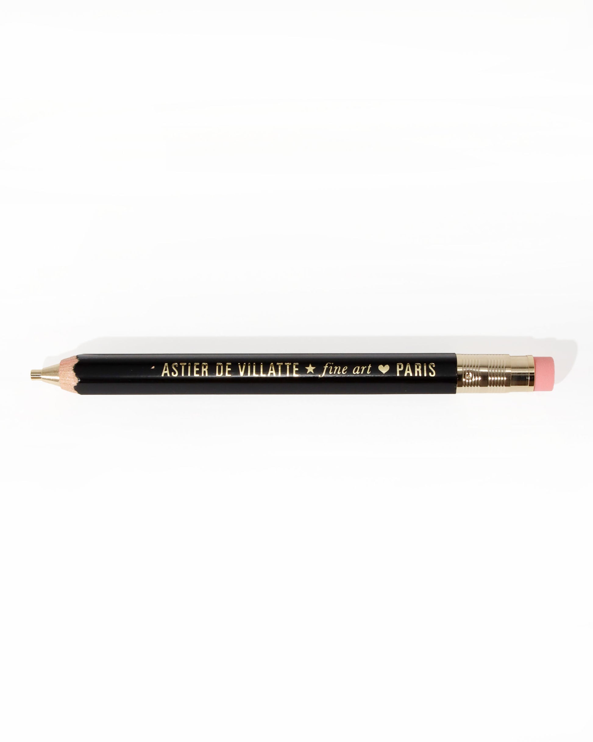 クラシカルな佇まいのステーショナリーシリーズ。まるで鉛筆のように究極にシンプルで洗練されたデザインのシャープペンシルは、温かみのある木軸は軽く、書き心地は軽快です。筆記、デッサン、デザインまで幅広い筆記をお楽しみいただけます。フレグランス消しゴムは片面に金の星模様が型押しされ、周囲を黒い帯によって包まれた極めてシックな装い。まるで魔法のようにじわじわと芳しい香りを紙の上、鞄や引き出し、そして箪笥の中に入れておくことによりポプリのような香りを拡散させながら間違いを消していく。アスティエ・ド・ヴィラットらしい贅沢なアイテム。同種類のキャンドルと同じ香りが広がります。