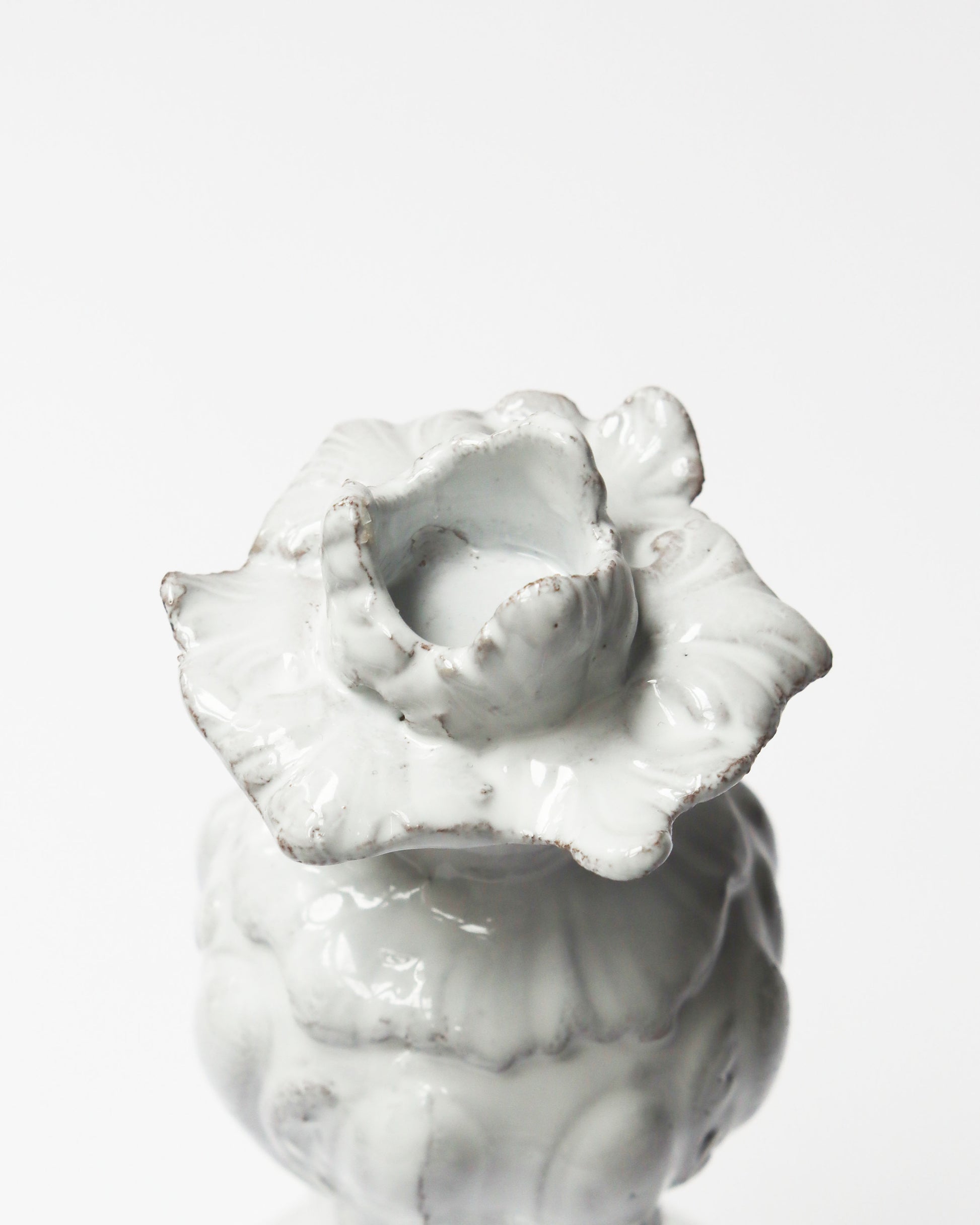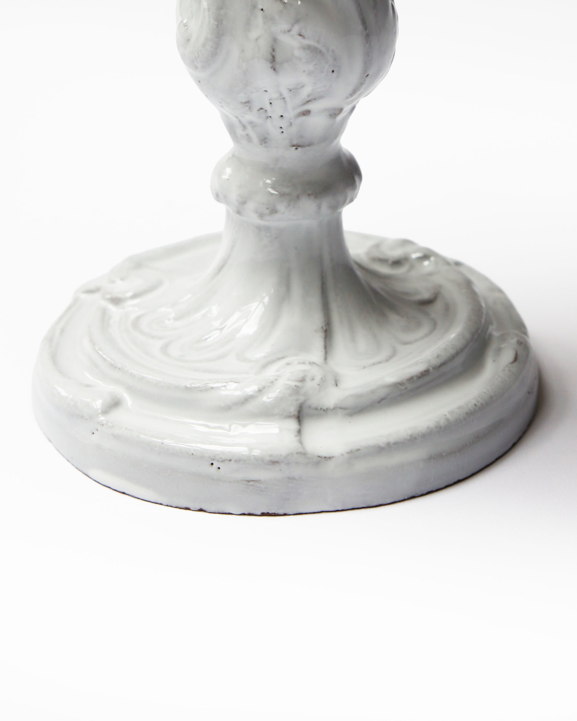 陶器にはパリ郊外で採掘された土を用いており、パリ市内の工房で何度も練り上げ、職人たちの手によりひとつひとつ形作られた後、窯で焼き上げていきます。18世紀パリの手工芸を継承すると同時に、エスタンパージュと呼ばれる技法を現代のテイストで蘇らせ、近代的な生産工程とは真逆をいく時間のかけ方が、全ての器に土を捏ねた手のぬくもりを残しているのです。