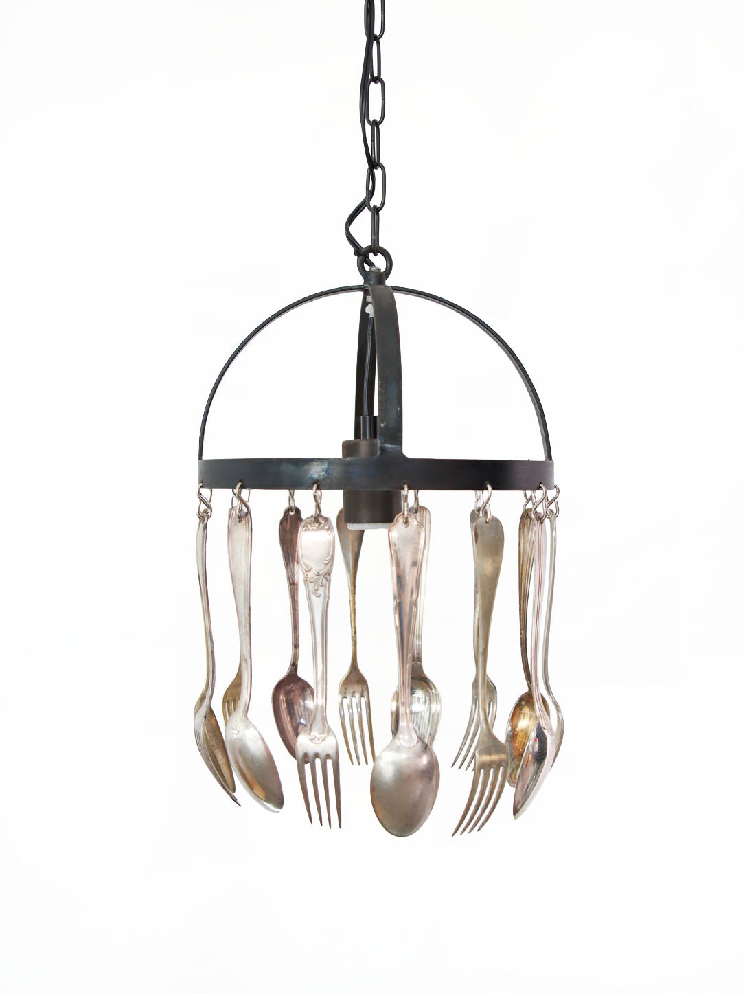 映し出されるカトラリーの影がユニークなオブジェのような照明は、フランスのアーティスト、Joseが蚤の市に赴いて集めた古いカトラリーを使用しています。そのため、ひとつひとつのデザインや色味が異なる1点ものです。キッチン、ダイニングのほか、レストランの什器などとしてもおすすめです。経年変化によるカトラリーの風合いをお楽しみください。