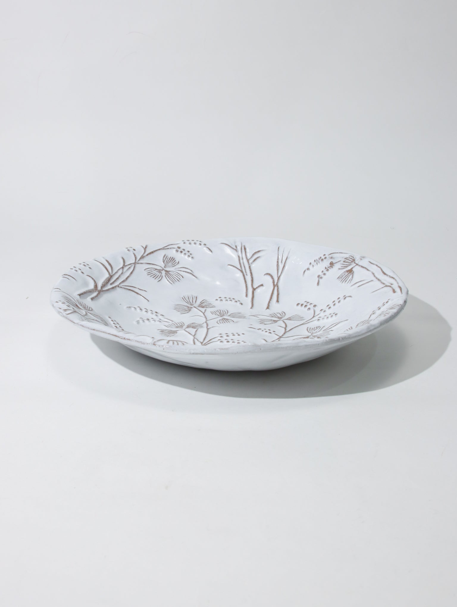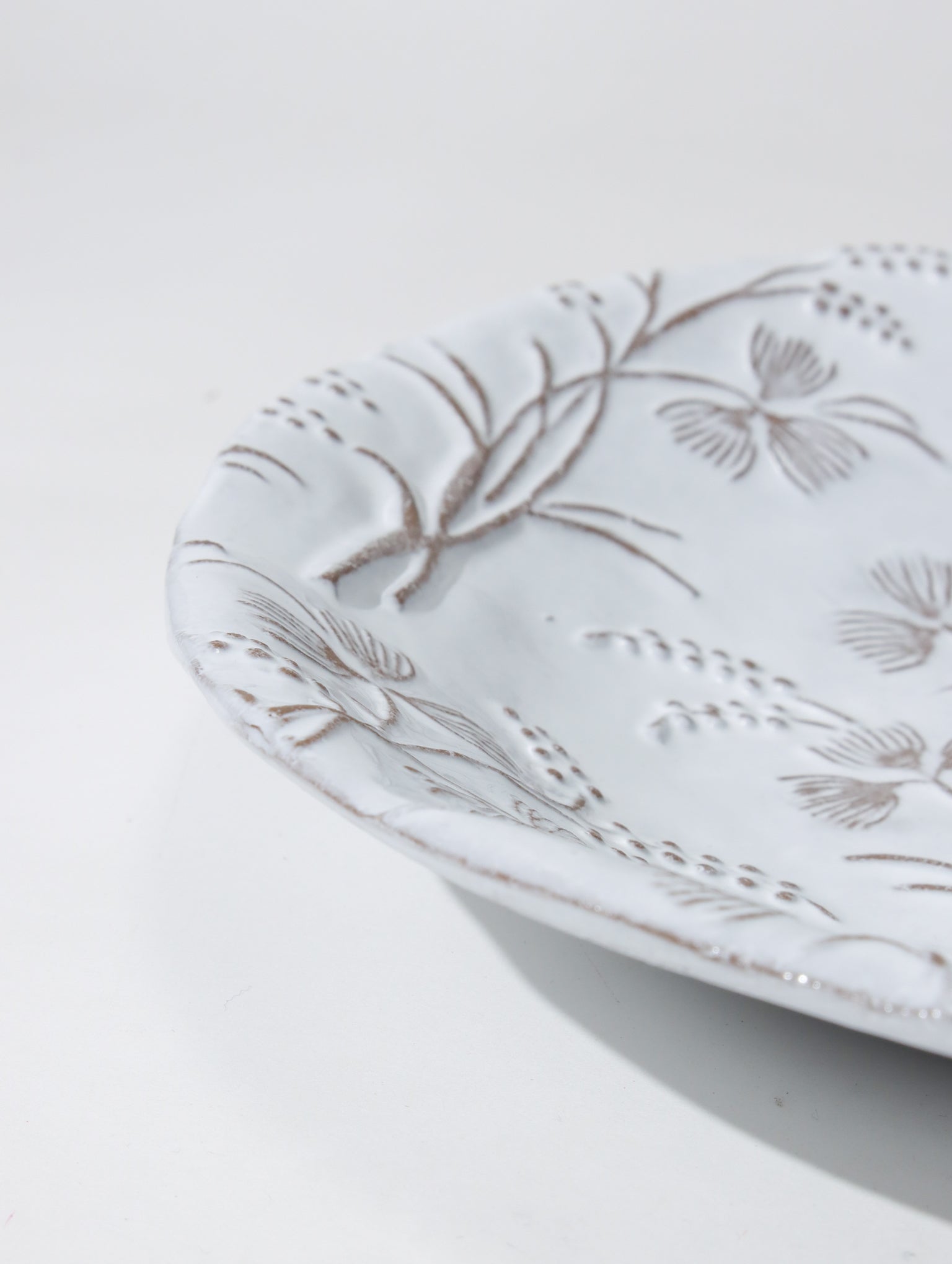 陶器にはパリ郊外で採掘された土を用いており、パリ市内の工房で何度も練り上げ、職人たちの手によりひとつひとつ形作られた後、窯で焼き上げていきます。18世紀パリの手工芸を継承すると同時に、エスタンパージュと呼ばれる技法を現代のテイストで蘇らせ、近代的な生産工程とは真逆をいく時間のかけ方が、全ての器に土を捏ねた手のぬくもりを残しているのです。