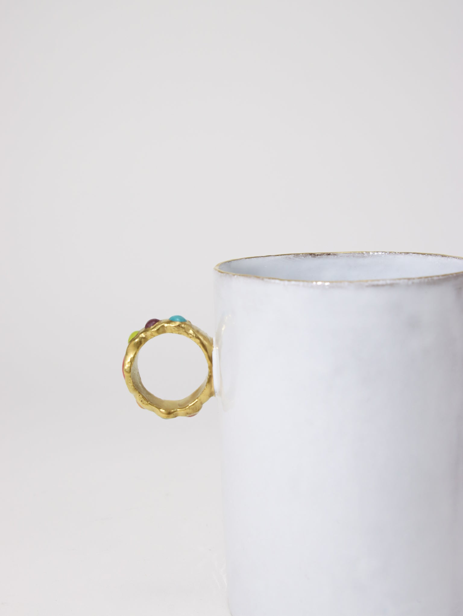 【Astier de Villatteのお取扱い方法・注意事項】アスティエ・ド・ヴィラットと彫刻家セレナ・キャロンヌのコラボレーション。シリーズの代表作の指輪カップは、白いカップをゴールドで縁取り、取っ手の代わりにアーティストが造形した、真珠や宝石が散りばめられているような大ぶりの指輪がつけられています。
