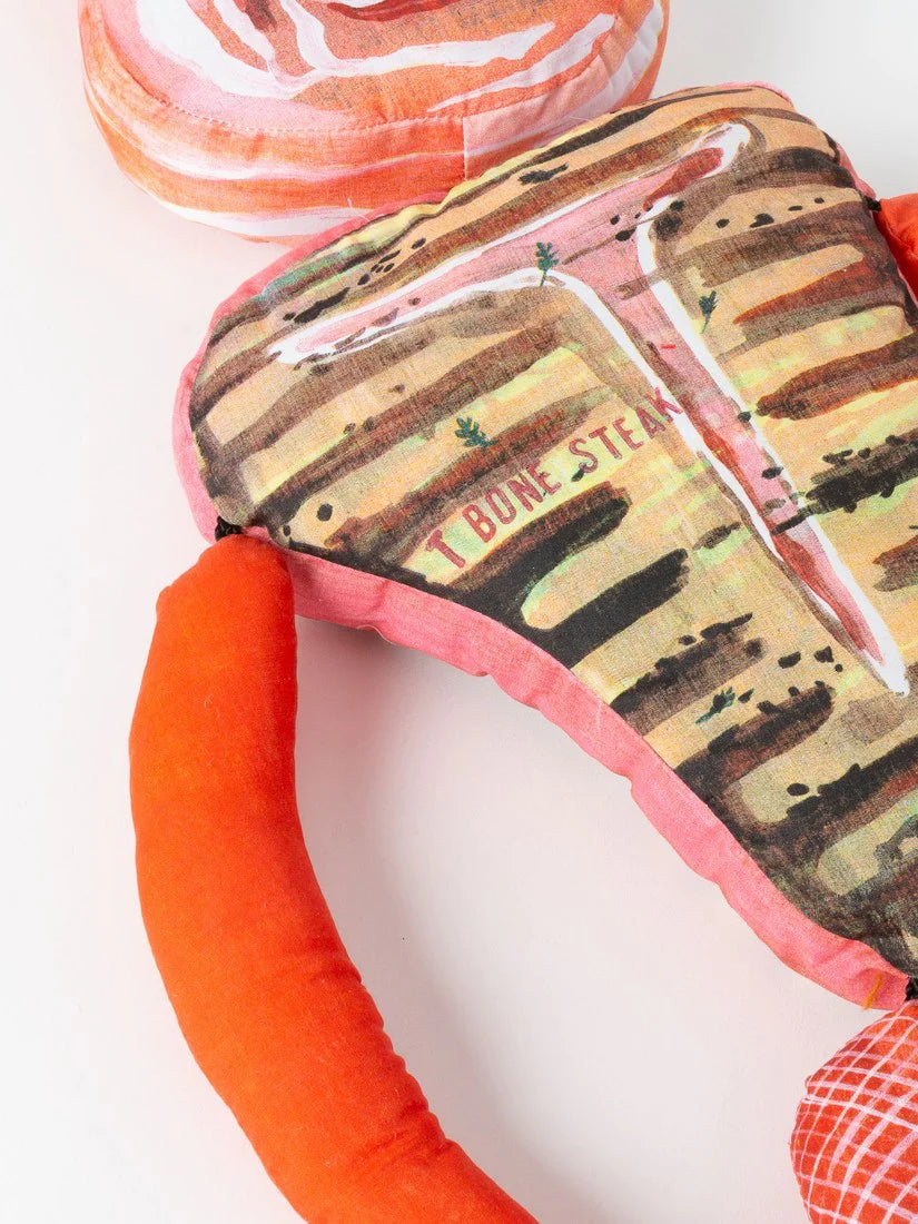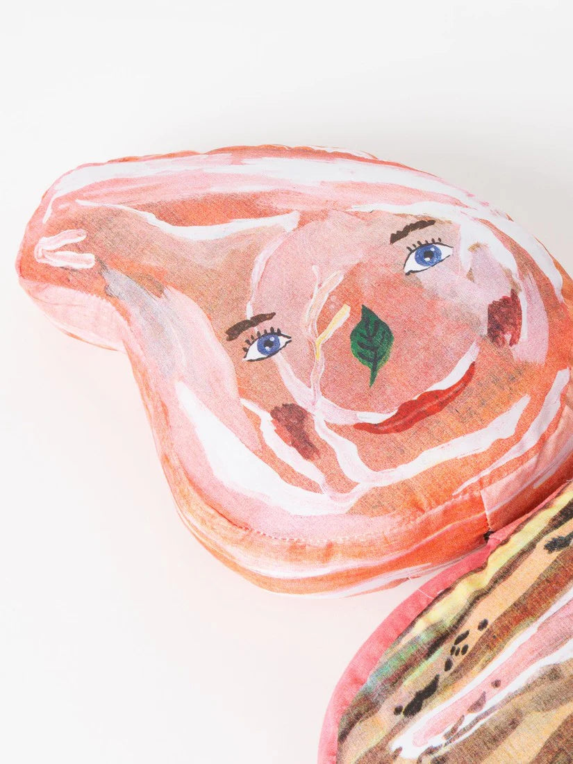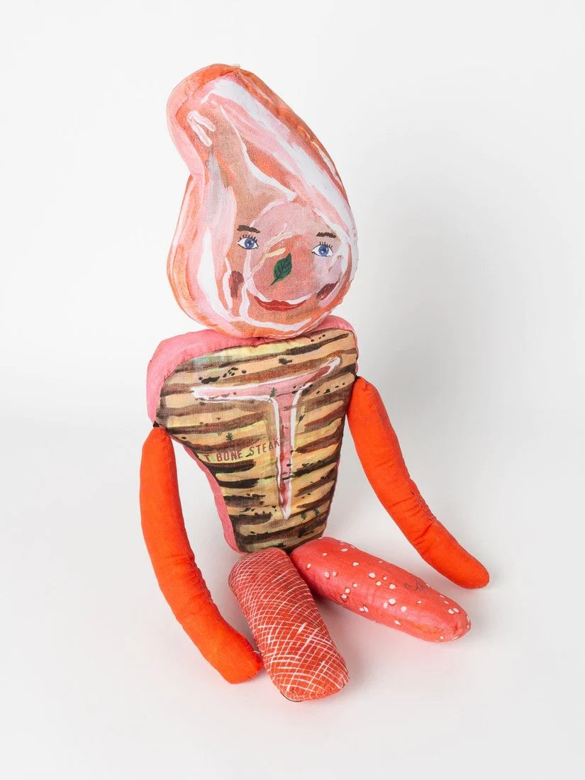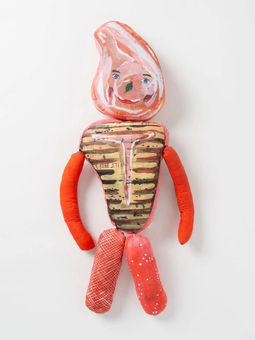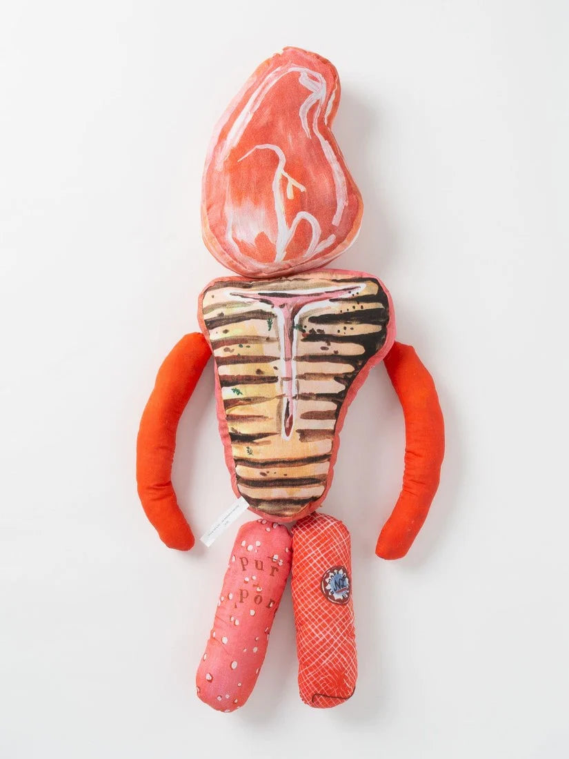 ナタリー・レテが学生時代からモチーフにしている「肉屋」の作品から生まれたドール。一目見たら忘れられないインパクトがあり、彼女ならではのシニカルな世界観が詰まっています。パリの肉屋の軒先に吊るされた肉たちのように、キッチンやダイニングに飾ってユーモアあふれるディスプレイをお楽しみください。ナタリー・レテによる独特な色使いとタッチが印象的な絵がプリントされたぬいぐるみ。ふわふわの手触りのぬいぐるみはオブジェのように、空間にユーモアを与えてくれます。